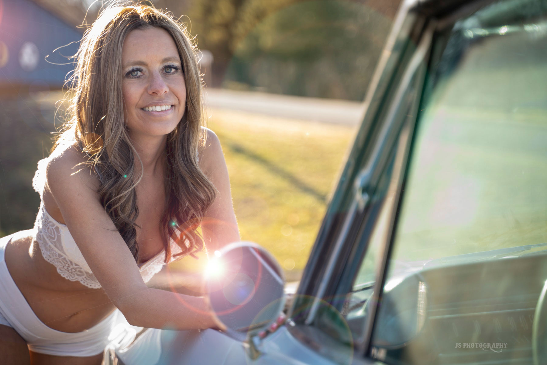 These particular feature ensembles I chose to contrast the vehicles. I had a 30 lb weight loss last summer and went crazy at a famous lingerie semi-annual sale! I also had to re-purchase the scrunch butt shorts and bralettes I traditionally wear out in the summer to car events in xs sizes and that is the clothing I wore in these shots, my daily summer togs, along with my fancy “underthings,” from my shopping spree!