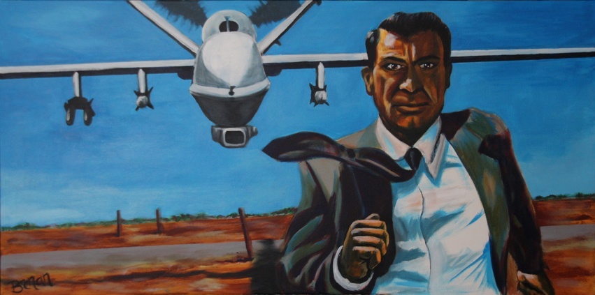 “Don’t Fear the Reaper,” Cary Grant runs from a reaper drone in an updated pivotal scene from Hitchock’s classic, “North by Northwest.”
