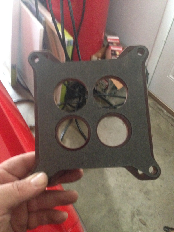 Here it is! The 1/2″ phenolic carb spacer we bought ourselves for Christmas for just $30. With the right setup, such as headers, aluminum intake, heads and performance carb, 20-30 horsepower is attainable.